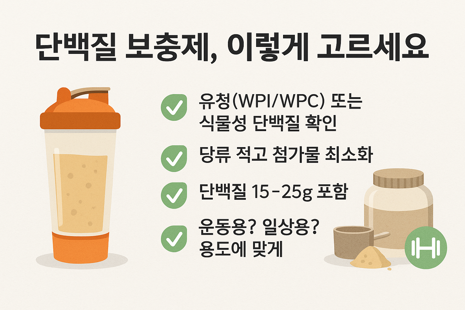 - 흡수 목적에 따라 선택: 운동 직후 → 유청단백 / 일반 보충 → 카제인, 복합단백질