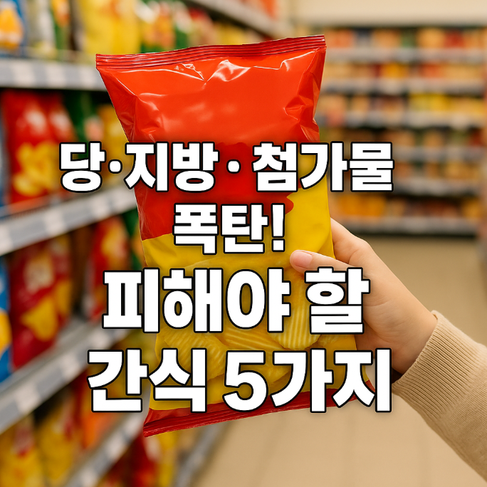 오늘은 자주 집게 되는 마트 간식 중, 건강에 해로운 5가지 유형을 알려드릴게요.